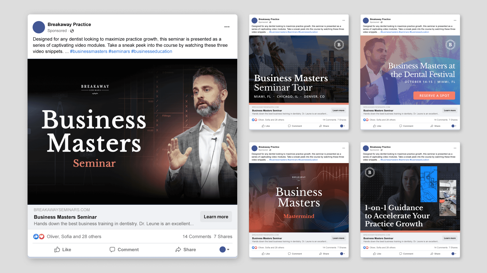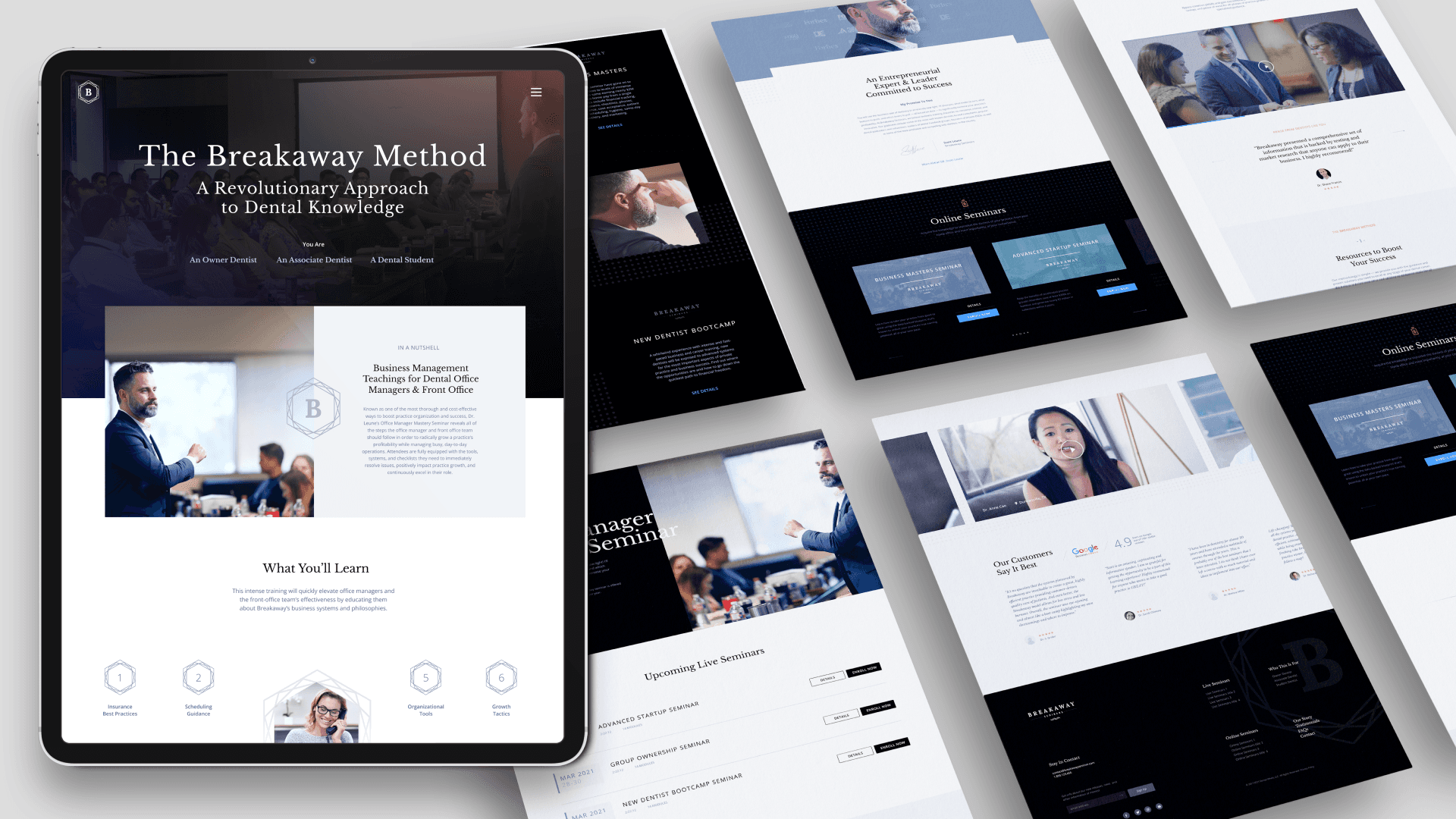 Led brand and marketing design across Breakaway Practice and partner ecosystem, creating cohesive identities, campaigns, and systems supporting education and growth. Work later integrated into Dental Whale platform following acquisition.