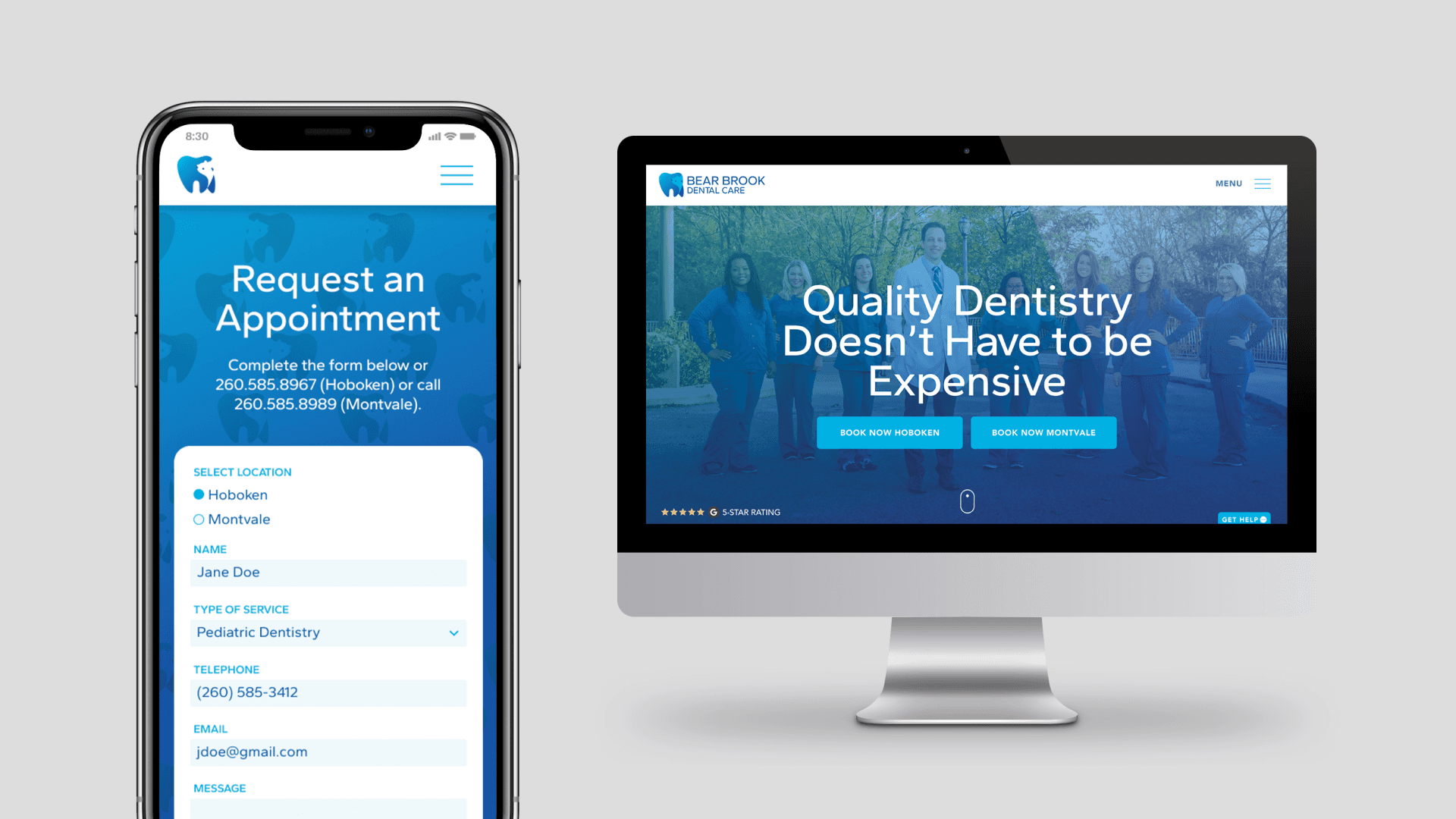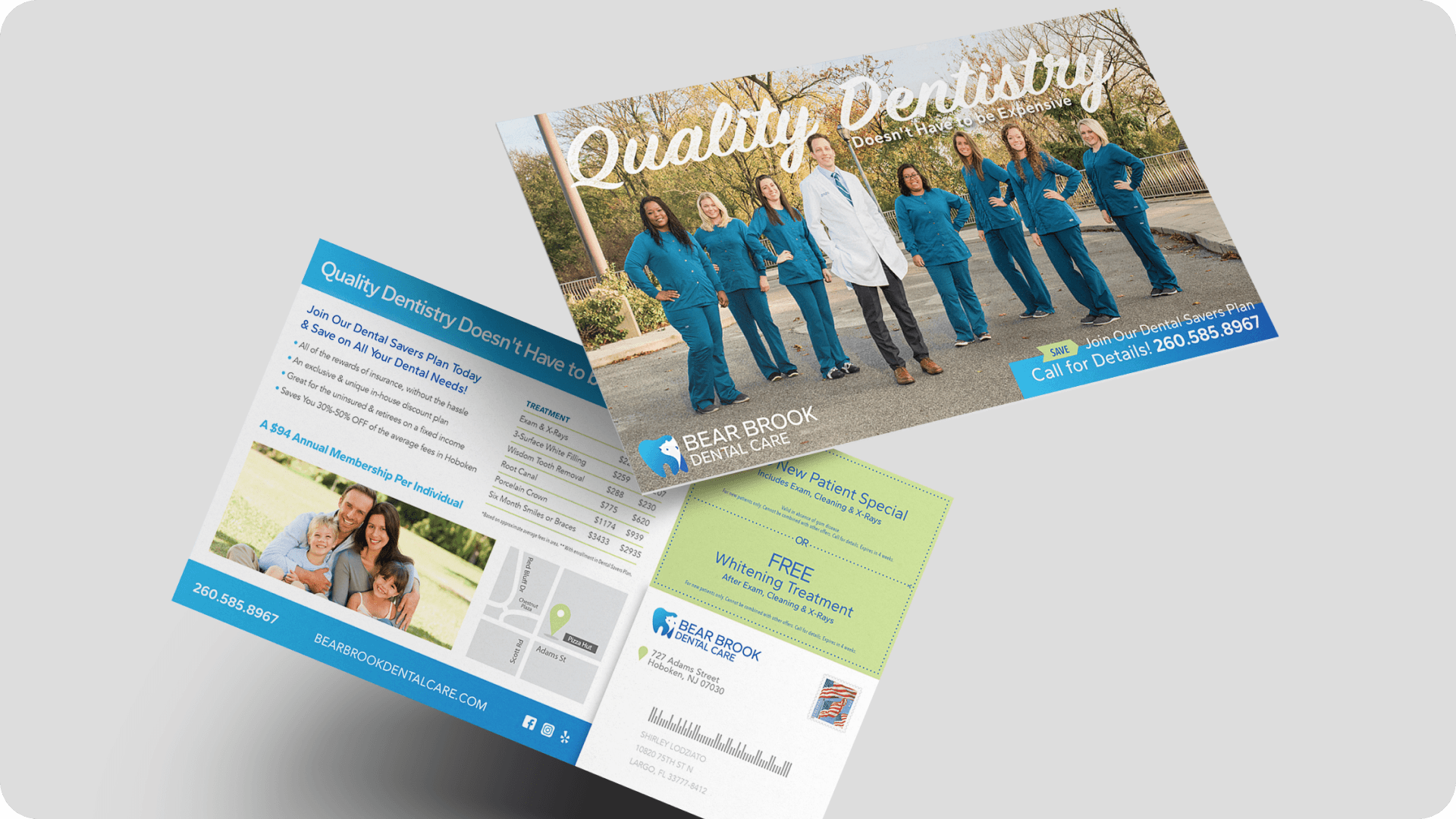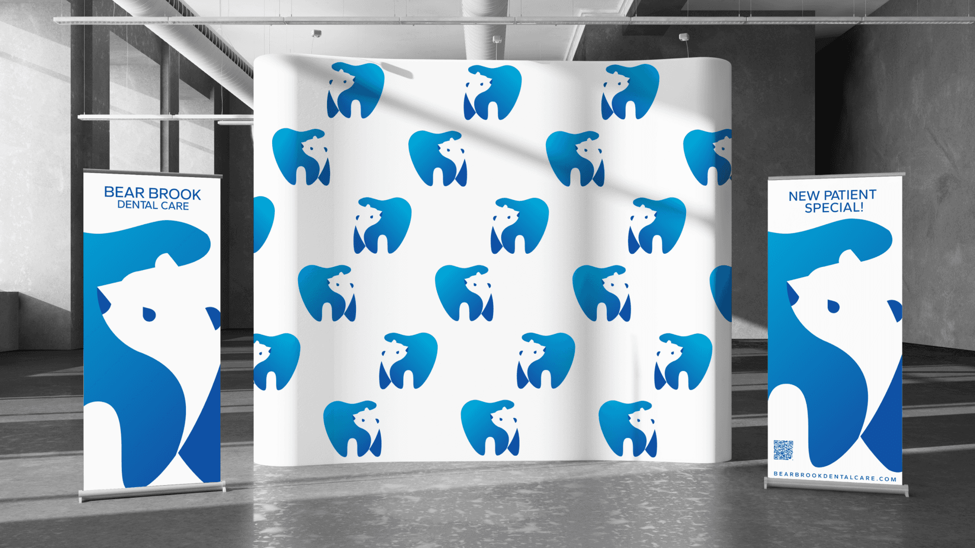 Bear Brook Dental Care: Brand development across mood boards, identity, web, ads, environmental graphics.