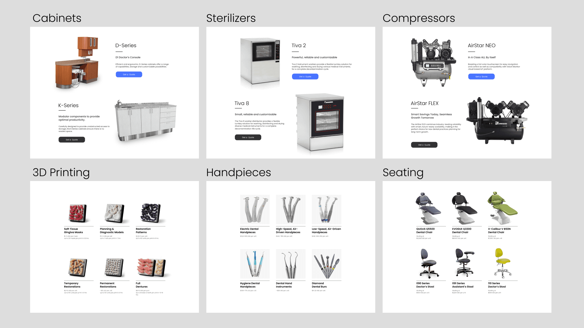 Iteration: Analyzed conversion data, refined underperforming elements, expanded successful patterns to additional products (seating, handpieces, imaging equipment, instruments).