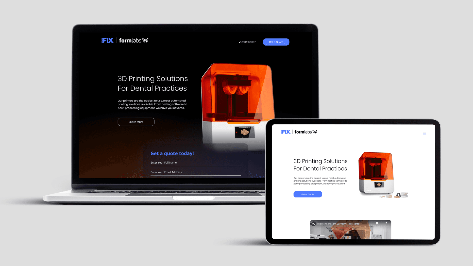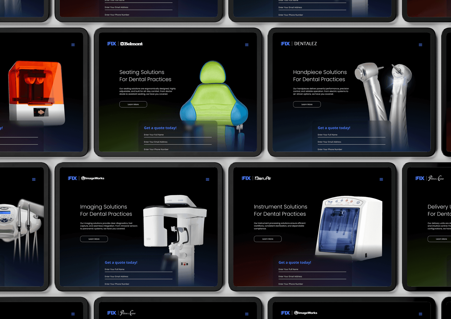 Dental Fix partnered with Formlabs to promote 3D printing technology to dental practices. The campaign needed to generate leads while remaining flexible enough to support additional equipment categories beyond the initial launch. The challenge wasn't just designing one high-converting landing page. It was creating a reusable system that could be tested, optimized, and extended to future products without starting from scratch each time.