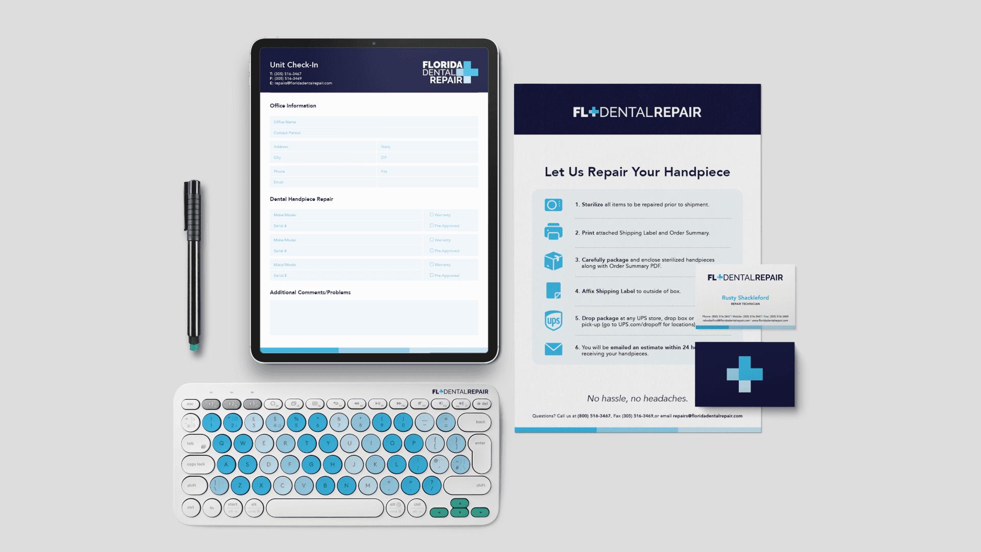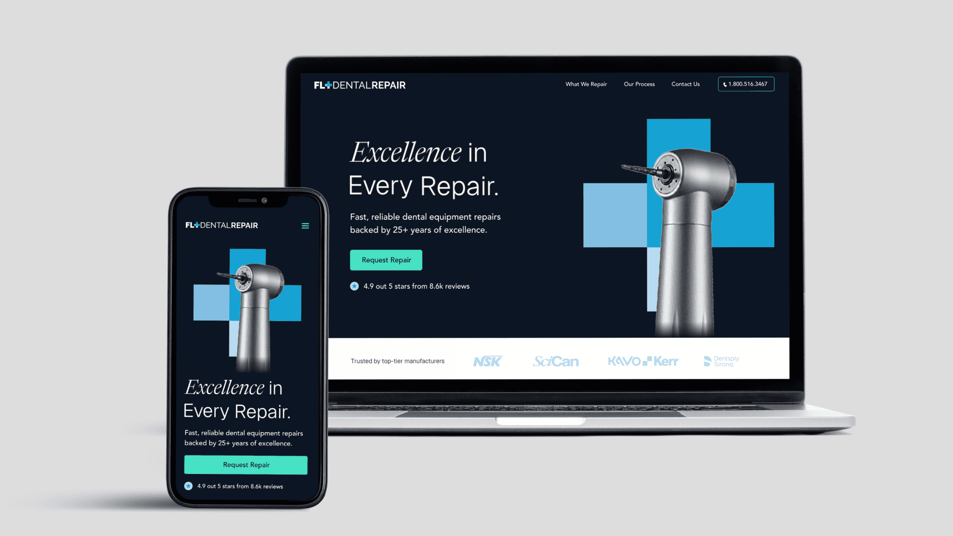Florida Dental Repair had 25+ years of expertise and strong customer relationships, but its brand identity no longer reflected that credibility. The visual presence felt dated and inconsistent across touchpoints. The website didn't communicate trust or professionalism. Potential customers encountering the brand for the first time couldn't see the quality and expertise behind the service.