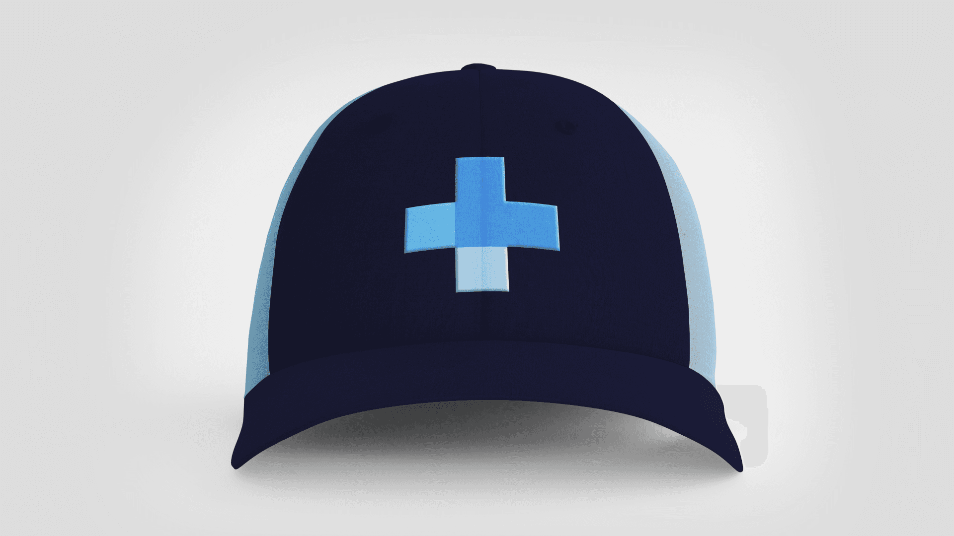 Final Direction: Simplified submark (medical/technical reference) with refined sans-serif wordmark. Navy and cyan communicated professionalism and tech credibility.