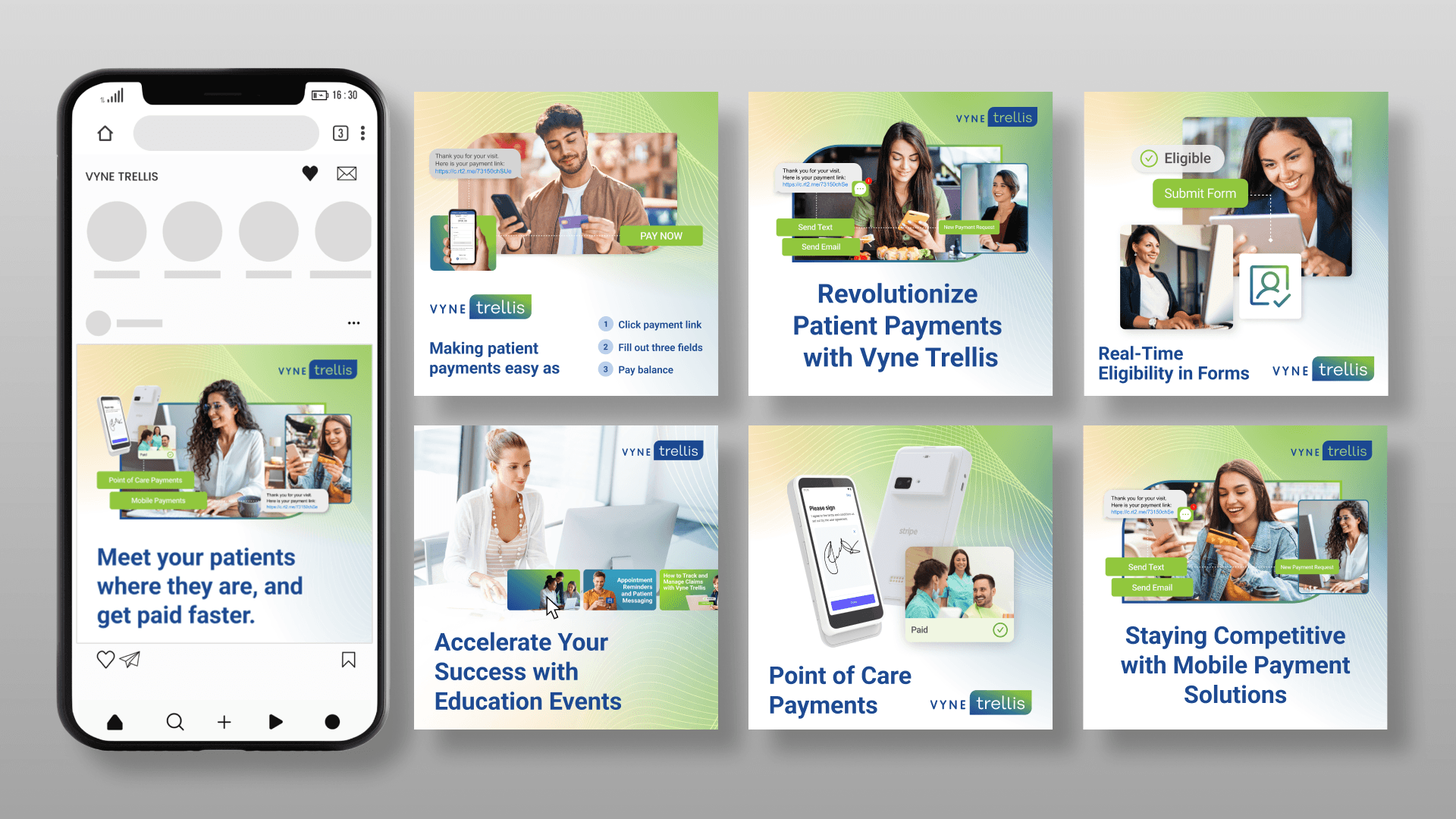 Marketing Campaign Materials: Created comprehensive marketing collateral spanning digital and print, social media graphics, Instagram carousel posts, postcard mailers, informational brochures, etc. Each piece maintained brand consistency while addressing different audience segments (patients, providers, practice managers).