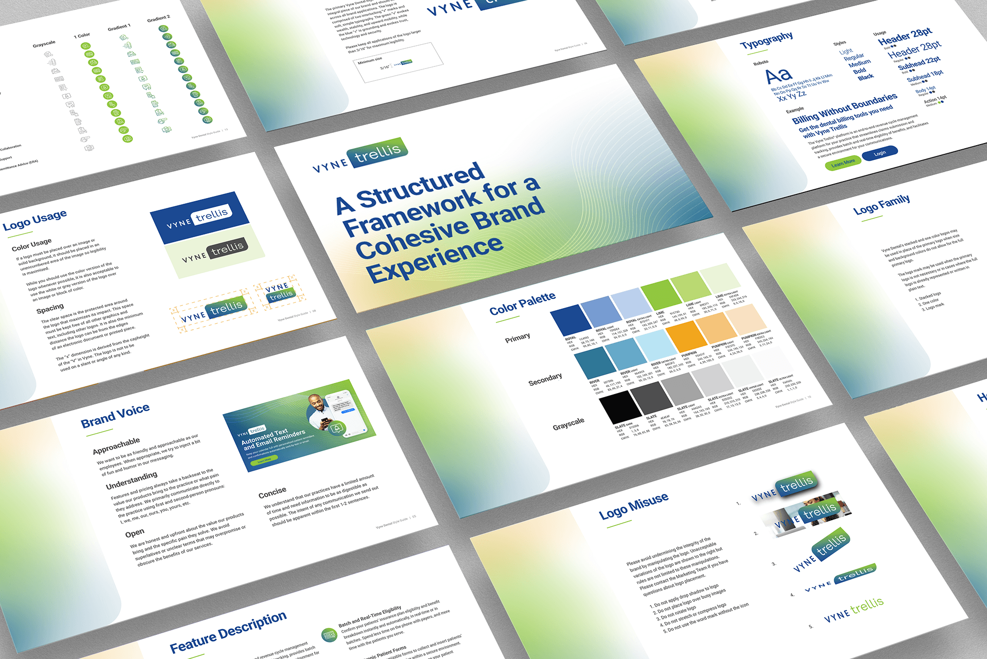 Print Collateral System: Designed scalable print materials (brochures, one-pagers, practice posters) with consistent brand expression. Established production specifications and vendor guidelines ensuring quality across print runs.